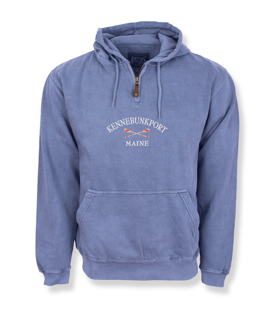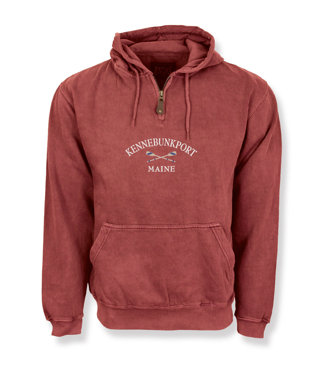 Stay comfy in our Kennebunkport 1/4 Zip Embroidered Oars Sweatshirt. Made from 10 oz 80/20 cotton/polyester, this garment-dyed sweatshirt is incredibly soft and comfortable. Plus, with a front pocket and drawstring hood, you'll stay warm and cozy on chilly days.