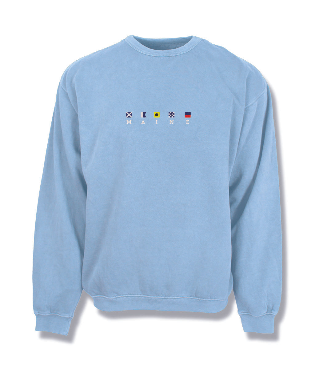 Get ready to set sail with our Maine Nautical Flags Crewneck Sweatshirt! Featuring embroidered nautical flags, this soft and comfortable crew sweatshirt is perfect for casual wear. Hoist the flags and show off your love for the sea with this playful sweatshirt.