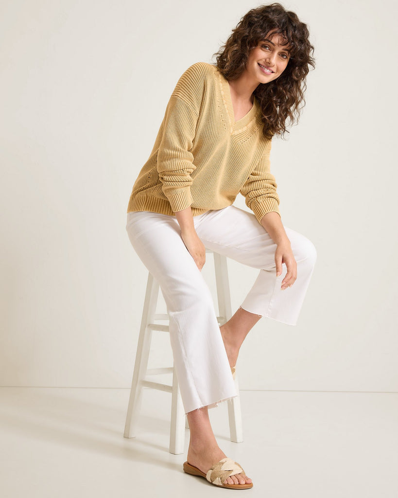 Make every hour golden hour in this easy, sun-washed sweater with charming details that's destined for chasing sunsets.