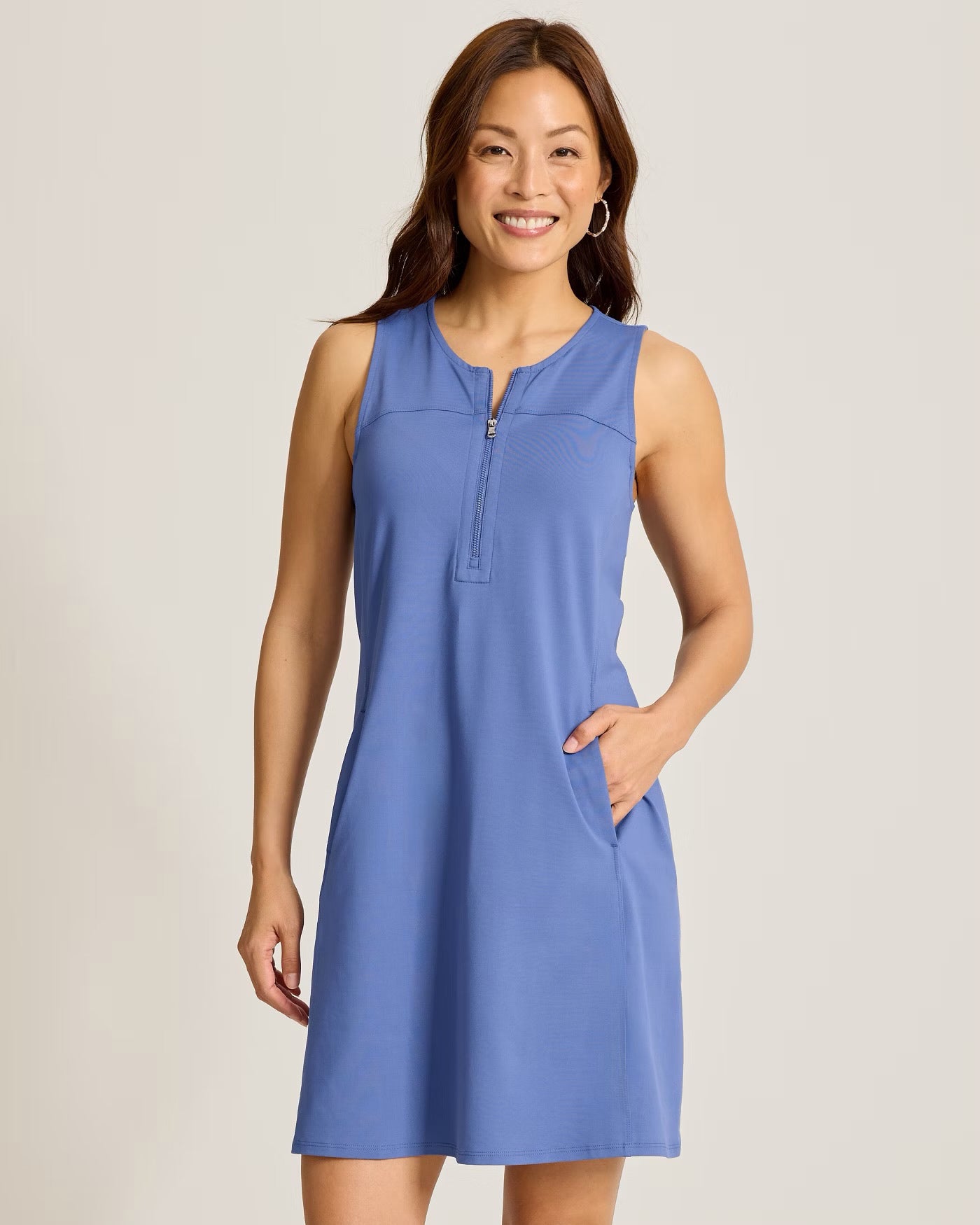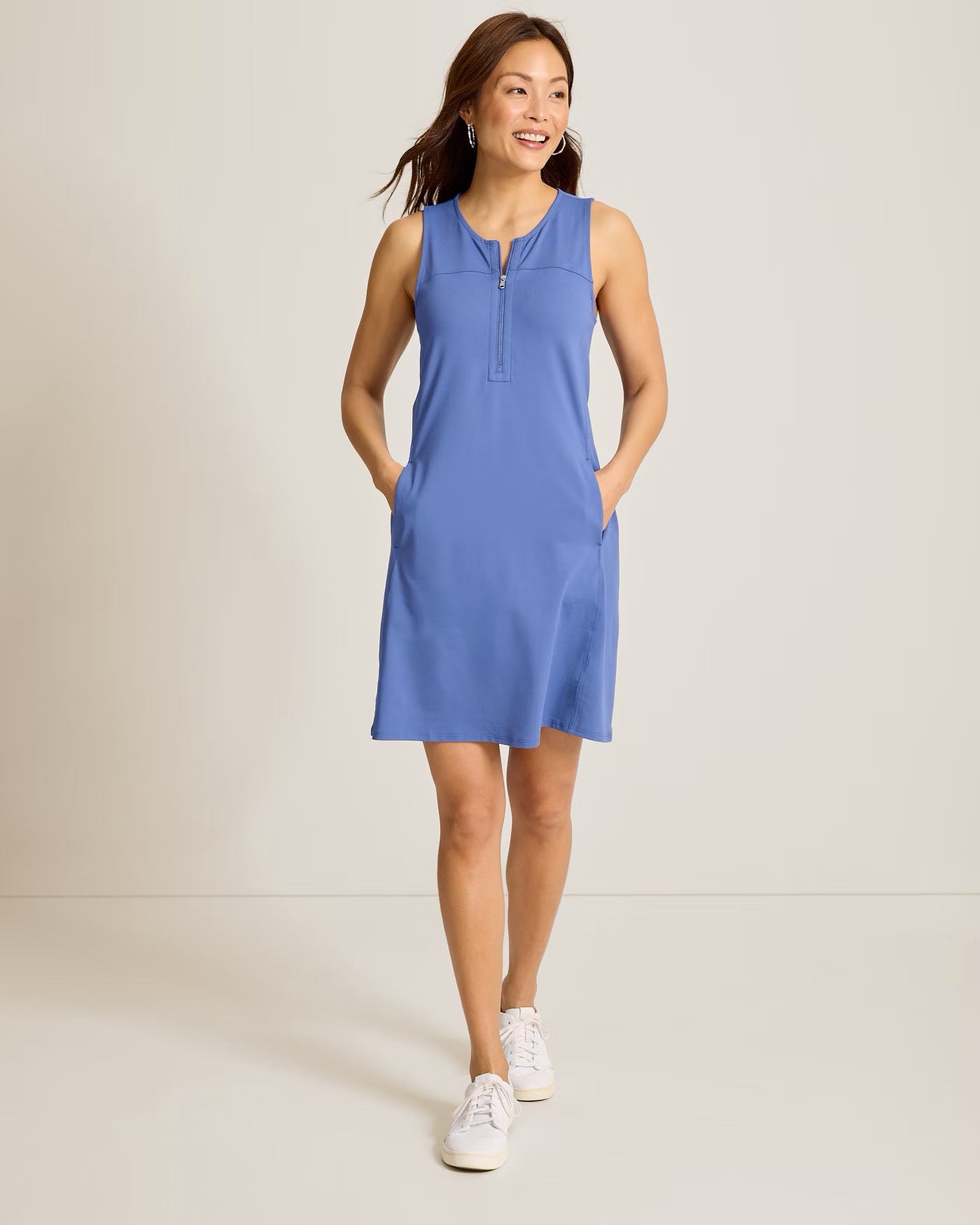 Go from court to café in this chic half-zip active dress, crafted from our iconic UPF-rated performance fabric and complete with pockets!