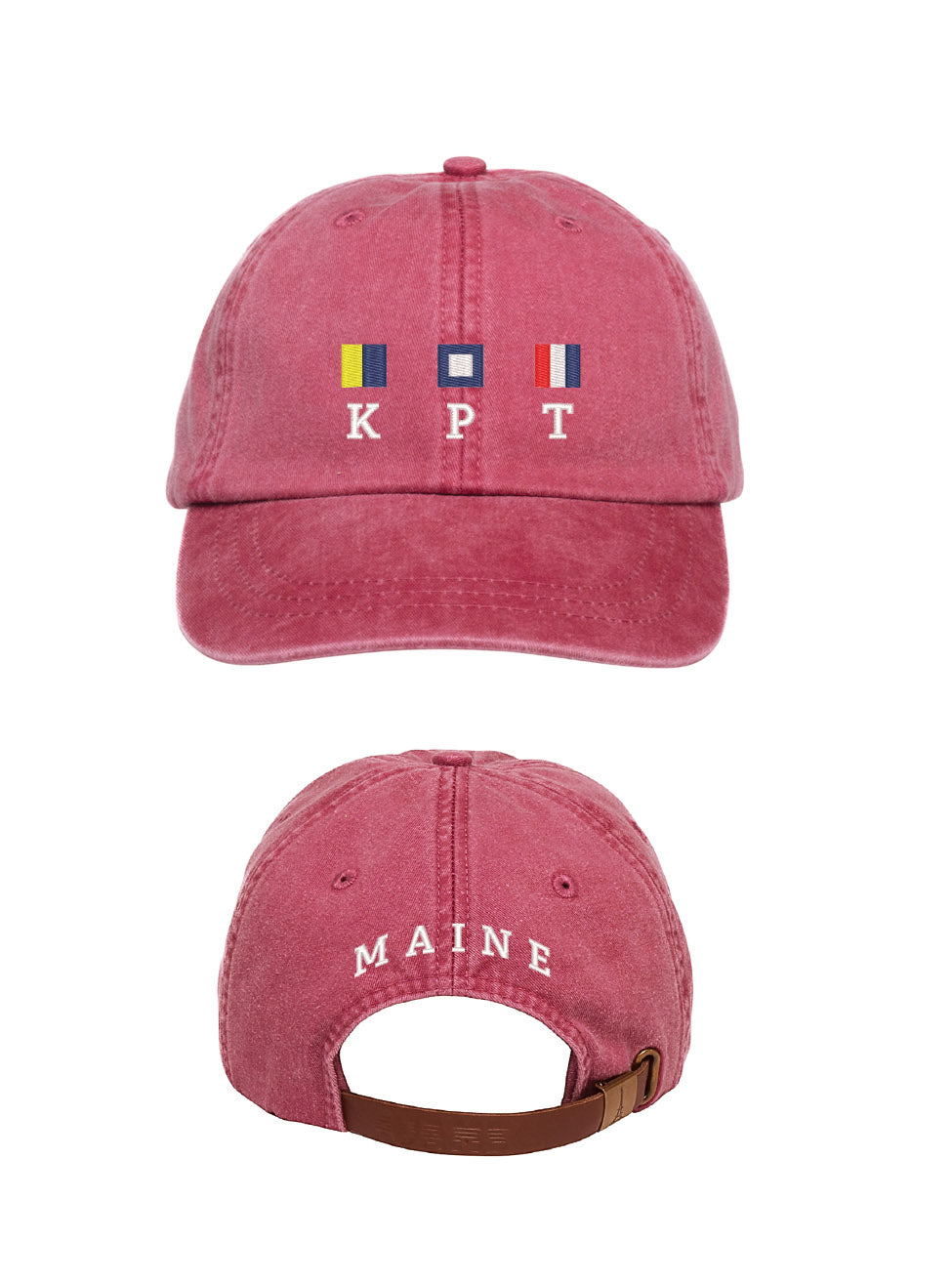 Spell out your love for Maine's most picturesque coastal town with this charming Kennebunkport cap featuring the destination's name in authentic nautical flags. Designed for the whole crew—from tiny sailors to seasoned captains—this playful accessory celebrates maritime tradition with a modern twist. Choose from two classic nautical hues that capture the essence of New England charm. Whether you're exploring the rocky shores, enjoying a lobster roll, or simply want to broadcast your Kennebunkport devotion, this cap is your ticket to nautical style that makes a splash wherever you roam.