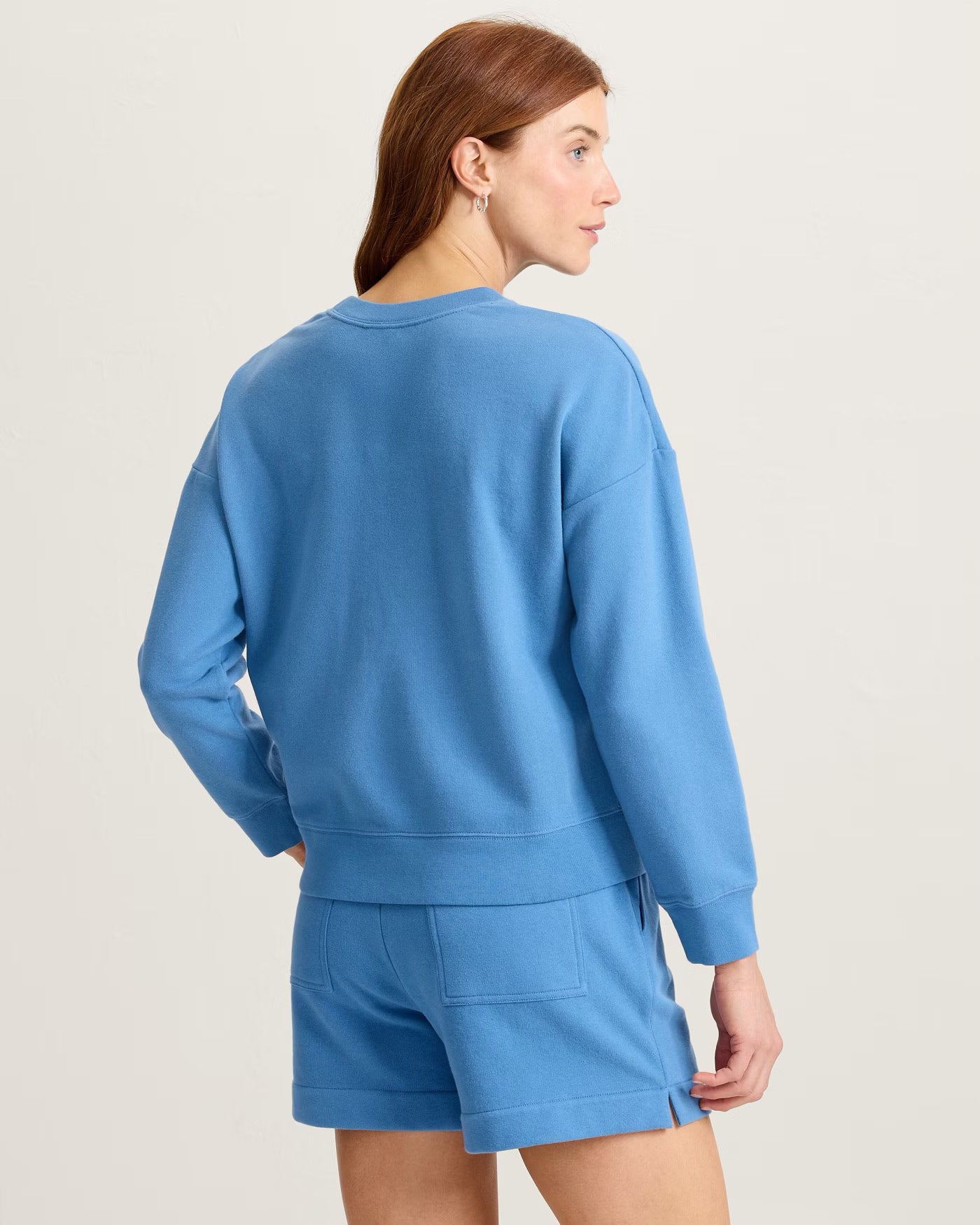 Thoughtful details bring a sense of effortless charm to our Marina Del Mar crewneck, from cheeky embroidery to the vibrant garment-treated look.