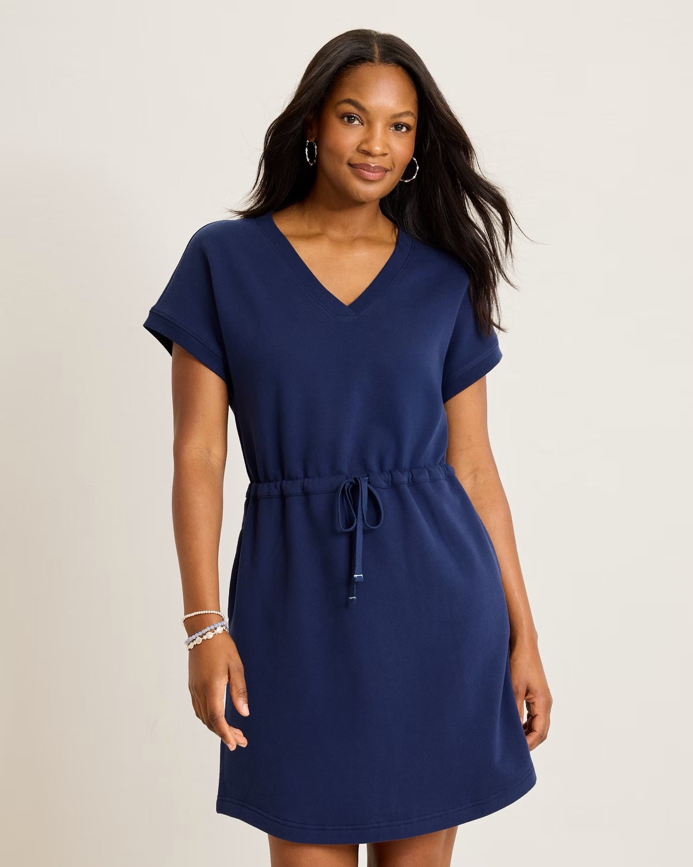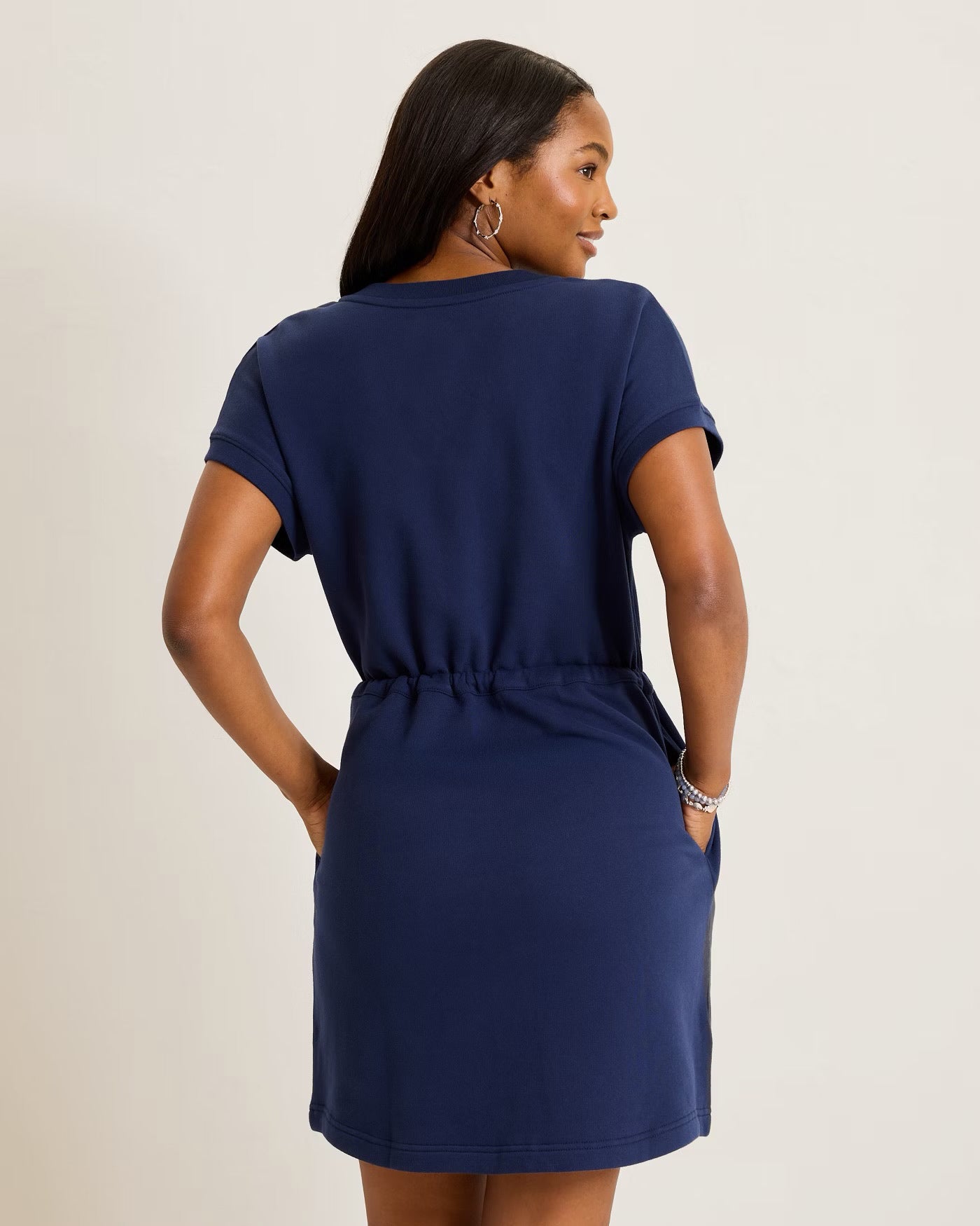 Your new favorite weekend dress is here! Crafted from our soft Marina Del Mar cotton, this casual short-sleeve dress is complete with a chic drawstring waist that brings even more comfort and style.