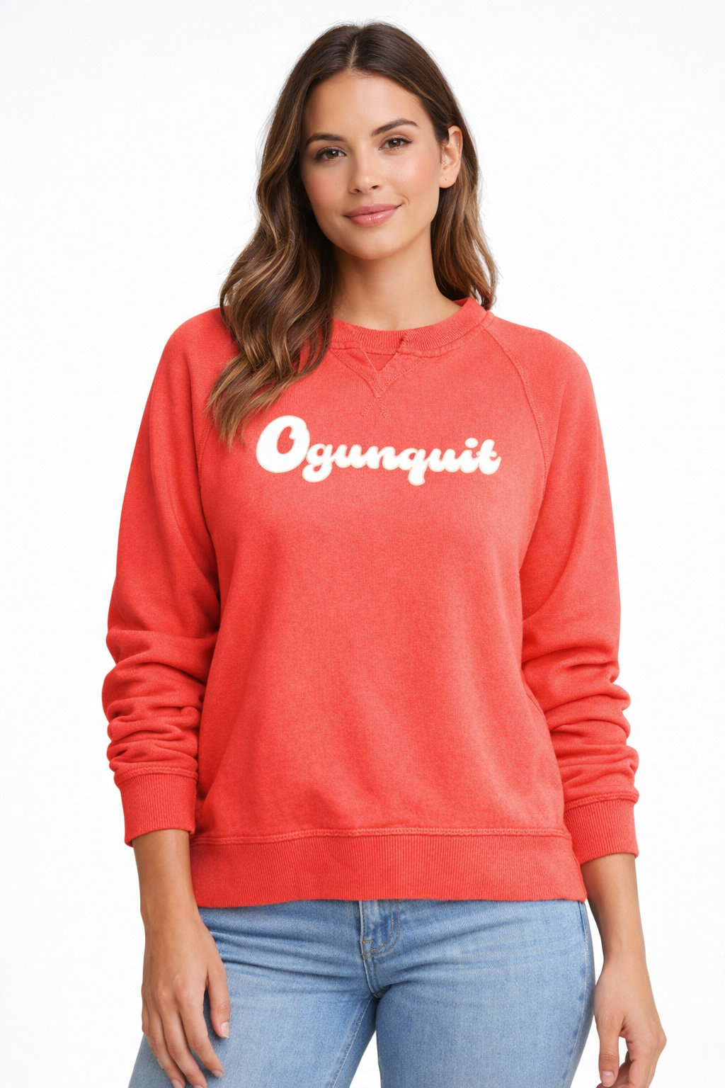 The "Ogunquit" Willow Crew is constructed of a cotton/polyester fleece. It features the garment dyeing process and a unique wash. The washes variation in color can be seen on the 2X2 rib at the neckline, cuff and waistband.